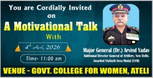 क्षेत्र के युवाओं और छात्राओं के लिए 4 अप्रैल को एक विशेष मोटिवेशनल टॉक का आयोजन किया जाएगा।…