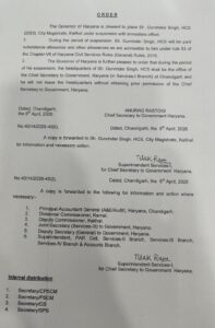 सरकार की बड़ी कार्रवाई हरियाणा सरकार का आदेश जारी, मुख्य सचिव कार्यालय चंडीगढ़ रहेगा मुख्यालय