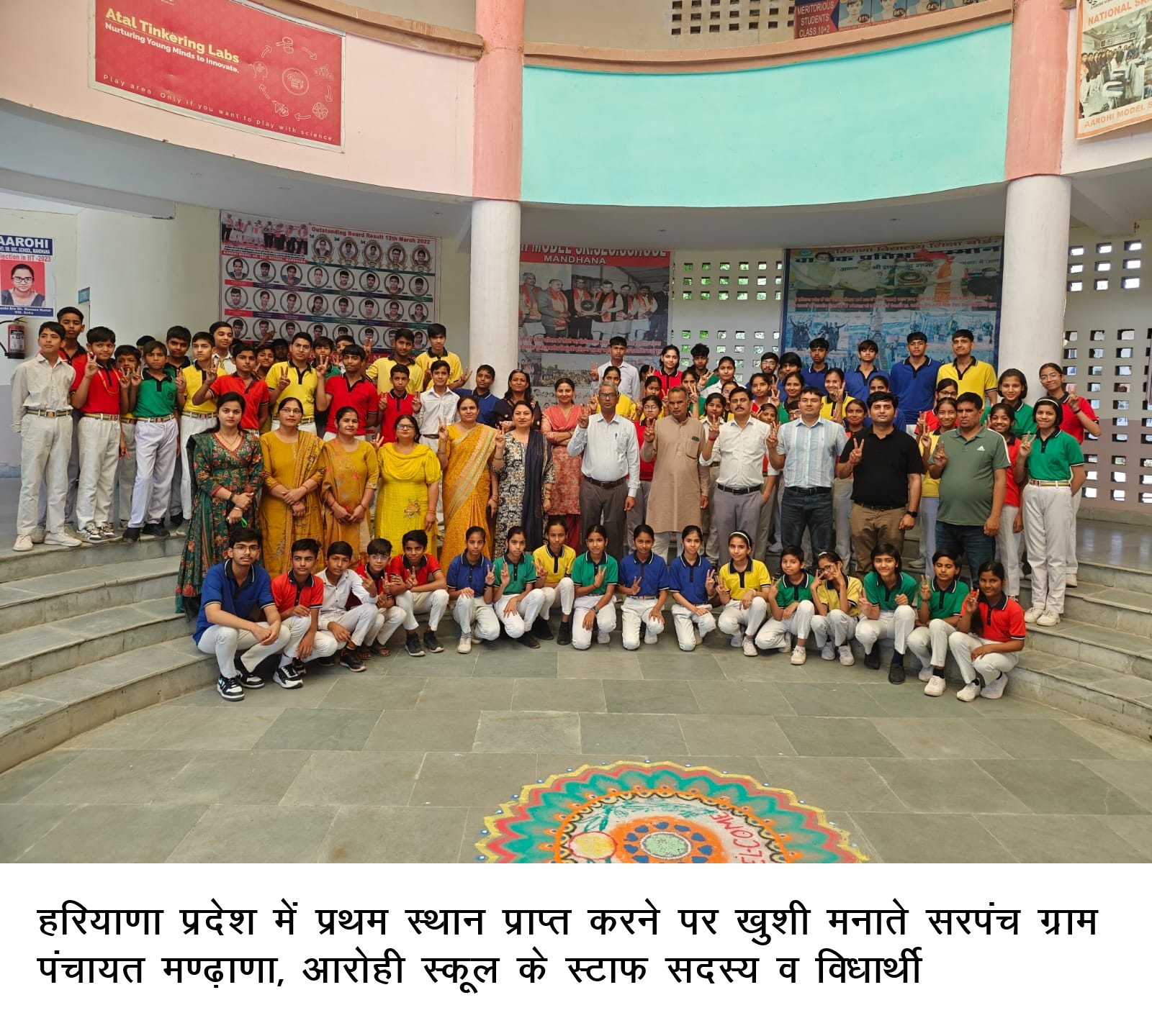 आरोही मॉडल सीनियर सेकेंडरी स्कूल मंढाणा ने एक बार फिर बोर्ड परीक्षा परिणाम में उत्कृष्ट प्रदर्शन करते हुए प्रदेश स्तर पर प्रथम स्थान प्राप्त कर जिले का नाम रोशन किया है। हरियाणा विद्यालय शिक्षा बोर्ड, भिवानी द्वारा जारी पत्र दिनांक 27 मार्च 2026 के अनुसार विद्यालय ने कक्षा 12वीं और 10वीं बोर्ड परीक्षा (मार्च 2025) के परिणामों में परिमाणात्मक एवं गुणात्मक आधार पर पूरे प्रदेश में पहला स्थान हासिल किया है।