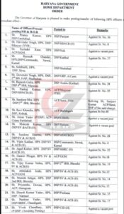 हरियाणा सरकार के गृह विभाग ने HPS अधिकारियों के तबादले और नई तैनाती को लेकर आदेश जारी किया है। जारी सूची के अनुसार नारनौल में तैनात डीएसपी दिनेश कुमार यादव का तबादला कर उन्हें पुन्हाना भेजा गया है। आदेश में यह तबादला तत्काल प्रभाव से लागू बताया गया है।